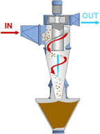 當含塵氣流由進氣管進入旋風分離器時,氣流將由直線運動變?yōu)閳A周運動。旋轉氣流的絕大部分沿器壁自圓筒呈螺旋形向下沿錐體流動。含塵氣體在旋轉過程中產生離心力,將重度大于氣體的塵粒甩向器壁,沿壁面下落到底部卸料閥排出,將塵粒從氣體中分離出來的一種氣固分離裝置。